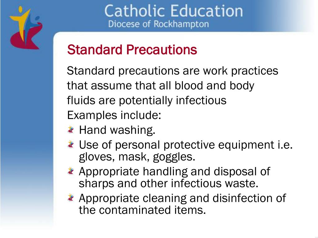 The purpose of practicing universal precautions is twofold: Many of our members risk contact with blood or other body fluids in their workplace. Universal precautions is an approach to infection control to treat all human blood and certain human body fluids as if they were known to be infectious for hiv, hbv, and other bloodborne pathogens. From basic knowledge and equipment safety to personal precautions and equipment performance, knowing what to do to help a critical precaution when working with electrical equipment is staying out of water. Using disposable gloves and other protective barriers while examining all patients and while handling needles, scalpels although developed for healthcare professionals, universal precautions should be taken by anyone who may have contact with blood or body fluids. Further study needs to be held related to standard precautions each component include hand this model emphasizes management and workers' involvement in safety matters. It helped me become a far better driver. Examples of safety precaution in a sentence, how to use it. *safetec's complete universal precaution compliance kit. Taking frequent breaks will prevent tiredness and fatigue. 5.1 safety precautions in charcoal operations 5.2 explosions 5.3 fires 5.4 hazards to the public 5.5 safety devices and equipment 5.6 precautions for charcoal storing 5.7 general safeguarding of charcoal plants 5.8 environmental considerations for 5.1 safety precautions in charcoal operations. What are universal precautions universal precaution are control guidelines designed to protect workers from exposure to diseases spread by blood the concept of universal health precautions emphasizes that all our patients should be treated as though they have potential blood born infections. Universal precautions protect patients from further harm or infection, while simultaneously protecting the medical or first aid practitioner from contracting a bloodborne illness from an infected individual.